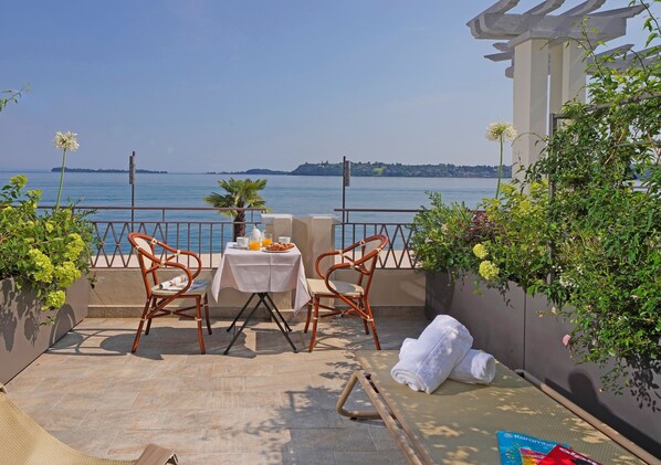 Rom – classic, terrasse, utsikt mot innsjø