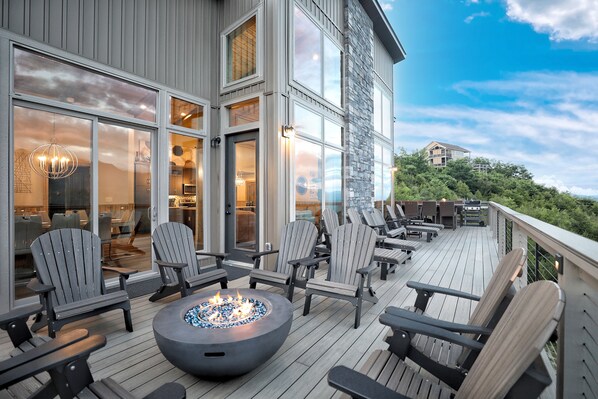 ● AMENITIES: Hot tub, game room, fully stocked kitchen, fire pits, gas grill, ample outdoor seating, panoramic view.