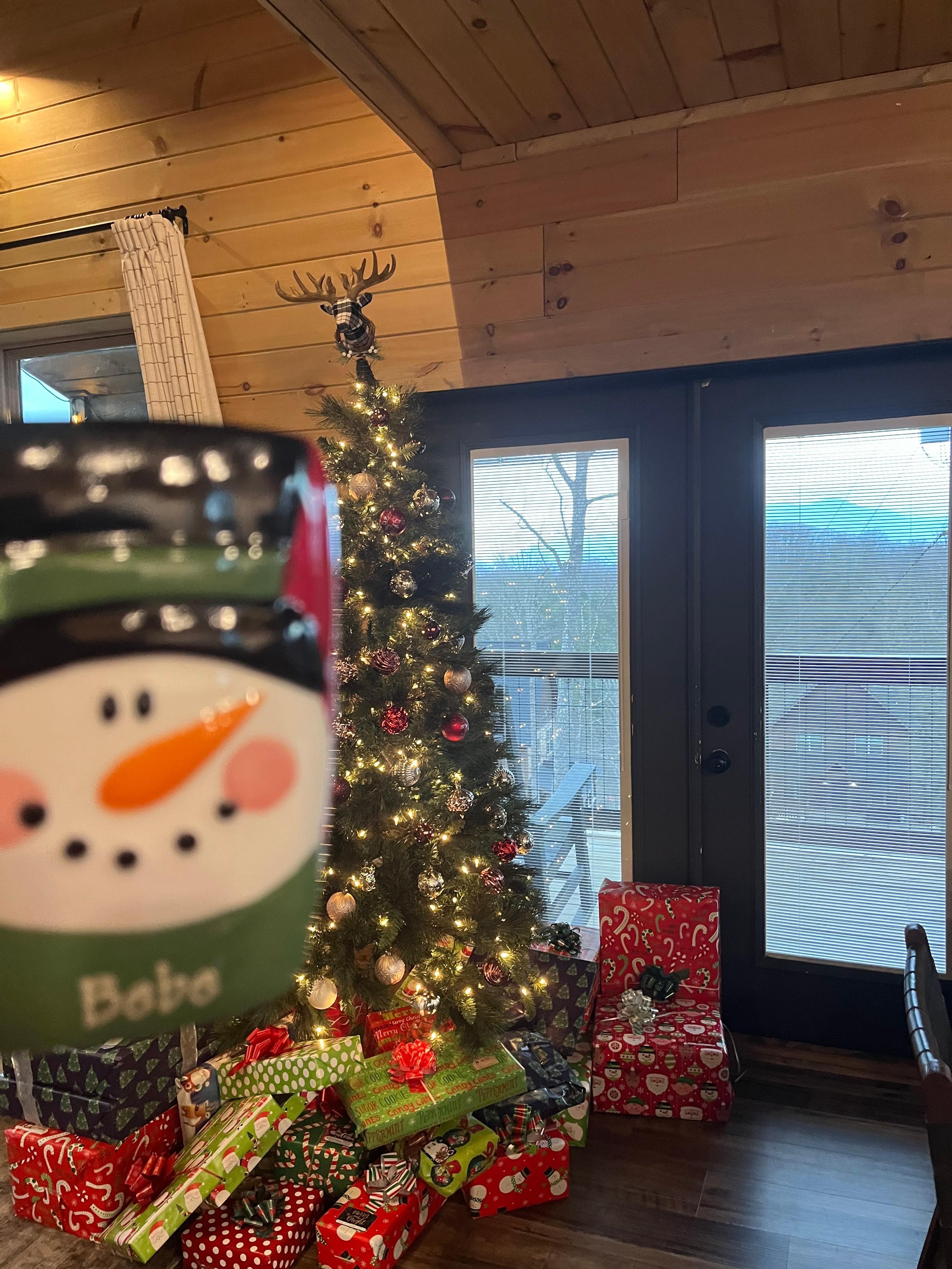 Step into our expansive 3200-square-foot cabin featuring six comfortable bedrooms, each equipped with smart TVs. Enjoy the convenience of five full bathrooms, including two ensuite, stocked with essential toiletries. The large kitchen boasts modern appliances and is complemented by an outdoor dining area with a gas grill, perfect for enjoying meals with mountain views.