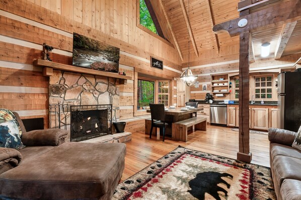 ➣Cozy living room with an wood fireplace and a flat screen TV