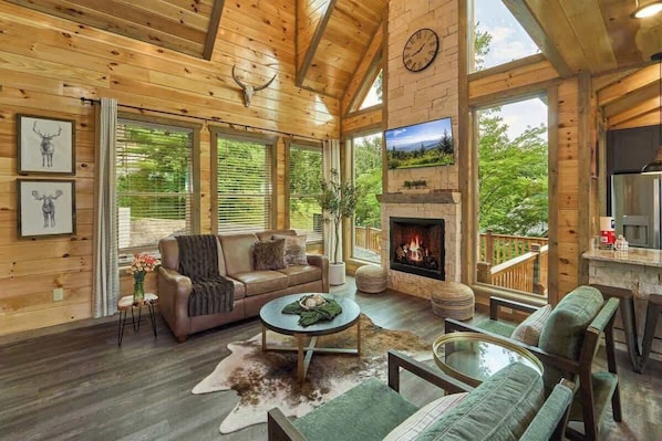 Welcome to Bears+Indoor Pool+Scenic Views*Brand New*+Hot tub lodge where luxurious mountain charm and entertainment merge into one amazing cabin retreat! Our newly built 3BD cabin (10 sleeps) is the perfect destination for your family to make incredible memories here in the Smoky Mountains. Located ONLY 7 minutes away with two access roads to Downtown Gatlinburg. ★Bears interaction★Heated Indoor Pool★Beautiful Mountain Views★Pool table+Arcade★Spacious rooms and baths★Great Wifi connection + more
