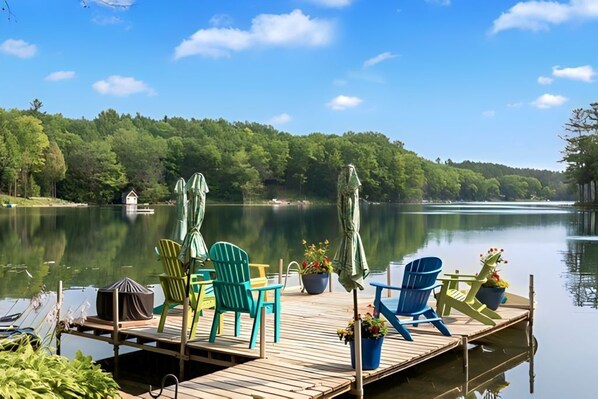• Dining: Enjoy meals indoors or step outside to the deck for alfresco dining overlooking the water.