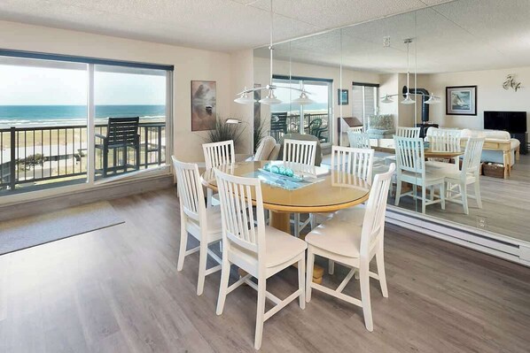 The condo is very room for a family of 5. It has a wonderful beachfront ocean view! It was great to have the balcony doors open and feel the sea breeze. The kitchen was well stocked with all cooking and baking pans and utensils the only thing missing was a pizza cutter. I was disappointed that the pool & hot tub was closed due to COVID-19 safety reasons but understand. The condo has several books and games which we enjoyed during our stay. Definitely a great place to stay in Gearhart.