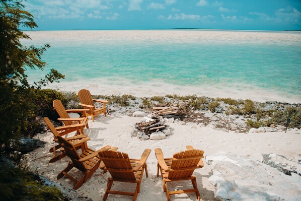 An abundance of glass doors and windows allows you to enjoy the vistas from the great room, dining room and kitchen, or you may choose to enjoy the views from the comfort of your own plush bed. Indulge yourself from a lounger at the beach side deck, grilling outdoors, or while sitting by the fire pit. The stargazing is out of this world in our magnificent and unpolluted dark skies. Treat your adventurous side to world class fly fishing (bone fish), a hike on a sand bar, explore a nearby cay in a kayak (included with rental), exercise your heart out with paddle boards (also included), or snorkel in a natural aquarium right off the property.