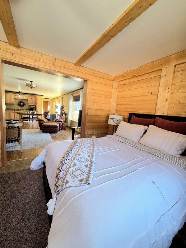 Konstruert i høsten 2014, er denne innsjøen foran eiendom utleie av ligger det Glenn Highway, som ligger i det lille samfunnet Nelchina, på Schooner Lake (ca 45 miles fra Allen). Med spektakulær utsikt over Chugach fjellene, gjør det til et perfekt sted for ferie, helgeturer, og / eller en ukentlig / månedlig leie. Selv om bare ett soverom, dette stedet tilbyr en romslig 800 kvm. Fot boareal på en historie. Selv med en king-size seng, det store soverommet har et skap og en praktisk innebygd vaskemaskin / tørketrommel med plass til overs! Sørvendte vinduer gir en utsikt fra alle rom (unntatt bad) for å kapitalisere på all naturlig sollys og utsikt mot innsjøen / fjell. Nyt et eget bad med dusj / badekar combo, forfengelighet og toalett. Lenger ned i hallen en full størrelse kjøkken med lønn skap åpner til stuen. Kjøkkenet har mikrobølgeovn, kjøleskap, stekeovn og oppvaskmaskin. Rikelig med skapplass for dagligvarer og forsyninger. For å få tilgang til leiligheten, inn gjennom et fint tilpasset tre oppføring ideell for å henge utstyr og med nok gulvplass for ekstra gjester. Vær oppmerksom på at dette stedet har plass til 2-4 personer komfortabelt. For ekstra gjester ta kontakt med eierne.