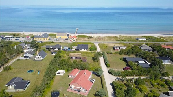 Dette flotte feriehuset i Fjellerup ligger kun 100 meter fra stranden og byr på havutsikt, privat velvære og god plass til hele familien. Hovedhuset har 4 soverom og 3 bad, mens et koselig anneks med 2 ekstra soverom gir mulighet for mer privatliv – perfekt for tenåringer eller besteforeldre. Husets samlingspunkt er bassengavdelingen med innendørs basseng og boblebad, supplert med et utendørs boblebad på terrassen. Tre terrasser, noen delvis overbygde, gir rikelig med plass til både soling, kaffestunder og grillmiddager. Under en av overbyggene er det innredet en bar med lounge, ideelt for hyggelige kvelder. Den inngjerdede hagen gjør huset barnevennlig og trygt. Fjellerup er kjent for sin brede sandstrand, ishus og vakre natur, som innbyr til både sykkel- og fotturer. Dette huset kombinerer ro og privatliv med kort avstand til Djurslands mange opplevelser – perfekt for en minnerik ferie. Vær oppmerksom på at dette VillaVilla-huset ikke leies ut til ungdomsgrupper.