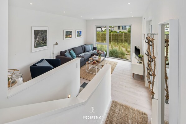 The highlight of the semi-detached holiday home is the 17 m² roof terrace with a panoramic view of the Baltic Sea.