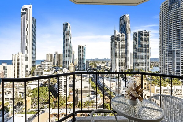 Denne leiligheten ligger ved sjøen i bydelen Surfers Paradise i Gold Coast. Cavill Avenue og Robina sentrum er verdt et besøk hvis shopping står på planen, men hvis du heller vil få med deg noen av områdets populære attraksjoner, kan du ta turen til Warner Bros. Movie World og Wet'n'Wild Gold Coast. Er du på utkikk etter et arrangement eller en kamp mens du er i byen, kan du se om det skjer noe spennende på Gold Coast Turf Club eller Broadbeach Sports and Recreation Centre. Se vår reiseguide til Gold Coast