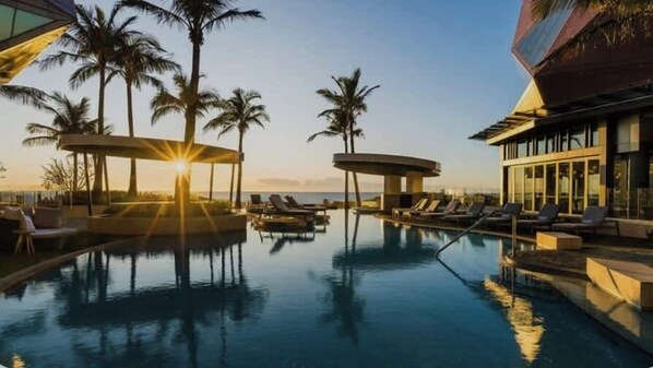 Indulge in 5-star beachfront luxury at The Langham Residences GC. This stunning apartment offers access to world-class amenities: outdoor lagoon pool, swim-up bar, gym & the rejuvenating Chuan Spa.