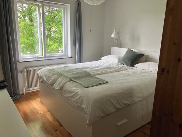 Two minutes walk from bus stop towards city. Family apartment with garden, terra kan friste med blant annet vaskeritjenester.