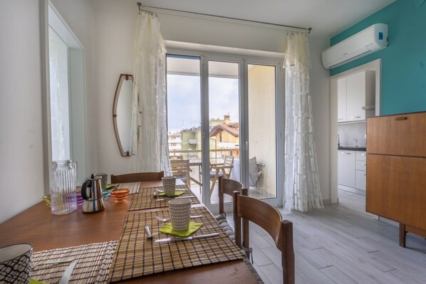 Leiligheten ligger i et rolig og trygt nabolag, preget av tilstedeværelsen av mange fritidsboliger og fritidsboliger. Det ligger midt mellom lagunen og havet, i en utmerket beliggenhet for å nyte både miljøene, panoramaene, duftene og de typiske aktivitetene til hver enkelt. I området finner du alle hovedtjenestene, inkludert: supermarkeder, apotek, minibank, bensinstasjoner. Det historiske sentrum av Grado, med sitt fotgjengerområde, restauranter, kafeer og klubber, ligger bare en kilometer unna.