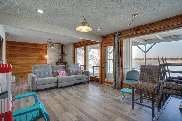 Alle gjesterommene på 5 Mi to Granbury Square: Waterfront Escape w/ Dock kan friste med goder i form av peis og klimaanlegg samt fasiliteter som spisebord og internettilgang.