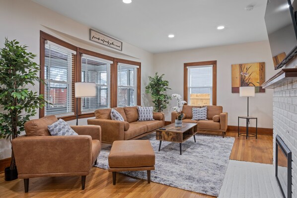 The main level is roomy and open with lots of seating for meals. The appliances are new and even though it is an old historic home, it feels contemporary and very very clean. The bedrooms are a really nice size, and the 3rd floor is a great space for a family or for older kids to stay. The only thing to be aware of are the stairs. The ones going up to the 3rd floor are steep, small, and wooden. The main stairs are wood as well but normal size. The main bathroom upstairs is large and new. Great bathtub and shower. The 1/2 bathroom off of the kitchen is new and very nice, and the 1/2 bathroom in the basement is small but very clean and new. Our host was very attentive and responsive. The neighborhood is family friendly and in walking distance to Eastown which was really nice. Quiet time starts at 9pm so that was nice. We would definitely stay there again!
