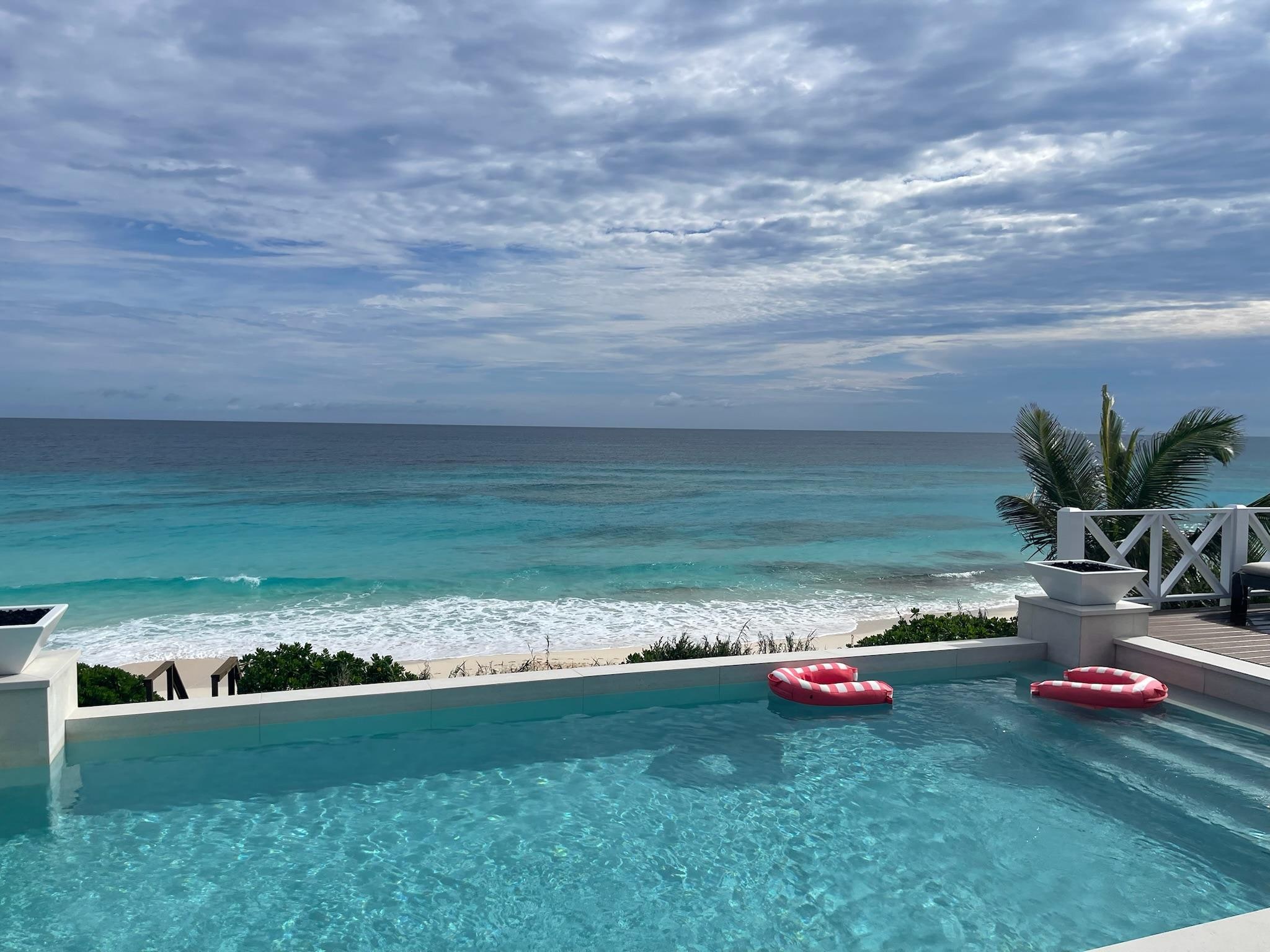"Love Beach" is a 5 bedroom 5.5 bathroom luxury pool home with a full gourmet kitchen, furnishings imported from Bali, and large decks overlooking the Atlantic Ocean with infinity edge pool extending off the rear sun deck. Private beach stairs takes you down to the beach, where you can lounge in the breeze, sun tan, swim, snorkel, stroll or just relax on the beach with chairs and umbrellas provided.