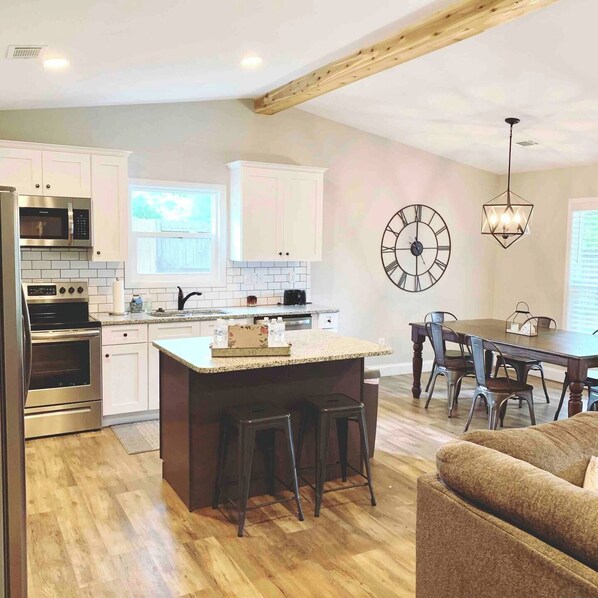 Welcome to our charming 3-bedroom, 2-bath ranch-style home, perfect for families or small groups seeking comfort and convenience. Nestled in a quiet neighborhood, this cozy retreat offers a seamless blend of modern amenities and rustic charm.