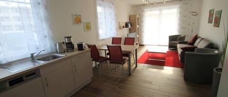 Denne leiligheten ligger på stranden og 5 minutters gange unna Grömitz Seebrücke, Strand Grömitz og Grömitzer Welle. Dessuten ligger Kurpark og Zoo Arche Noah kun 10 minutter unna.