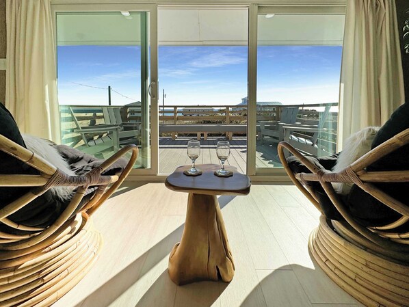 Gulf-front condo with beach views, balcony, central AC & pool