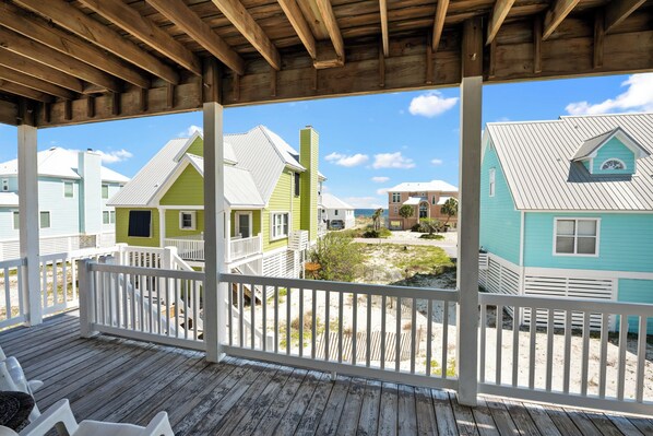 Fantastic! Comfortable home with plenty of room for everyone. We had a group of 10, including 6 kids. We loved the location to the beach and the incredible ocean view. We spent all our free time on the back porch enjoying the amazing view. We loved the rocking chairs too! We had not stayed in Ft. Morgan before, but we knew we would be about 20 minutes to Walmart/grocery stores so we cooked for all of our meals except for one. I really appreciated that the kitchen was well stocked. Plenty of pots and pans, roasting pans, mixing bowls, any spatula/whisk/spoon/can opener…you could need! There were two charcoal grills but I would have loved to have had a gas grill though for convenience. The beach access was maybe 3 houses down which was nice and we had one of the pools right around the corner. The other pool was a little further, but not bad. I would have loved to have had a golf cart or bikes, though because we were making several trips to and from both the pools and the beach daily. My only complaint, and it’s no fault of the property owner, it’s Morgantown community, but be aware that there is no shower AT either boardwalk from the beach. The house itself has a great outdoor shower and water hose. This means you and your kids will be walking about a block either barefooted or in scratchy, sandy shoes and covered in sand! Not a huge deal because it’s worth it to be away from the hustle and bustle of GS and OB, just kinda weird, I think.