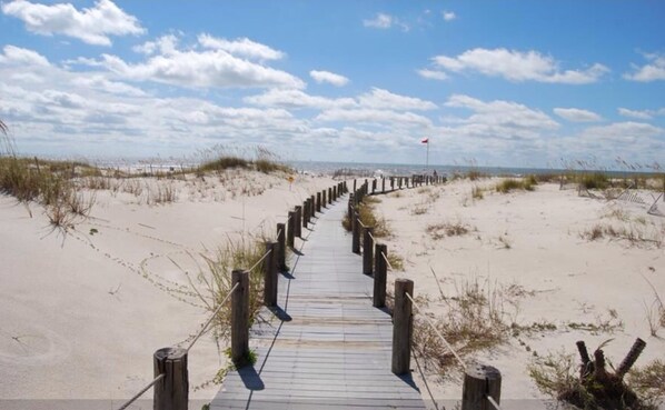 Kom til Gulf Shores Plantation enhet 1342 for en morsom, avslappende ferie. Vi ligger i 3. etasje i Plantation vest med utsikt over vakkert anlagt gårdsplass og har en spektakulær utsikt over bukten. Den nyoppussede leiligheten har et soverom med en queen size-seng og en 42 i TV. Gjestene soverommet har en dronning og en tvilling og en 32 i TV. Loftet har en dronning og en 32 i TV. Stuen har en dronning sovesofa og en 55 i Smart TV. Det er et fullt utstyrt kjøkken som inkluderer en mikrobølgeovn, oppvaskmaskin, kaffetrakter, brødrister, blender, gryter og panner, og retter. Det er et spisebord med plass til seks og kjøkken bar seter 2. Balkongen gir en fantastisk utsikt over bukten som ligger bare noen skritt unna. Det finnes utallige fasiliteter på Gulf Shores Plantation. Det er 6 utendørsbassenger, et barnebasseng, en splitter ny innendørs svømmebasseng bare noen skritt fra vår enhet, 4 boblebad, basketballbaner, tennisbaner, volleyball område, treningsrom, shuffleboard, hestesko, griller, putting green og en på- minibank. Gulf sår Plantation er et inngjerdet kompleks med 24 timers. sikkerhet. Det er også en restaurant og en kaffebar på stedet.