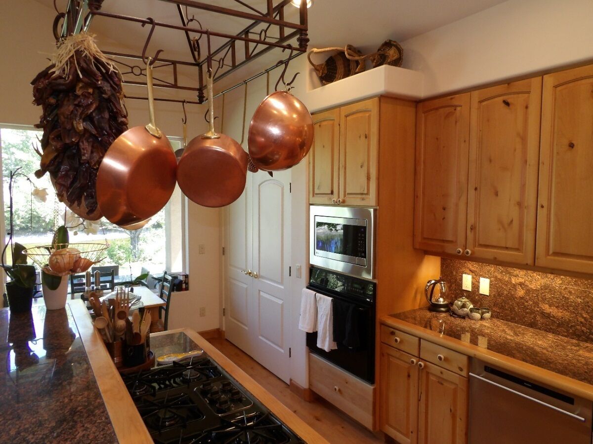 The dining area comprises two inviting options. The first is a tastefully furnished dining room featuring a farm table that comfortably seats up to eight guests. Alternatively, the breakfast nook offers a stunning panorama of the backyard and mountains, providing a delightful setting for your morning meals.