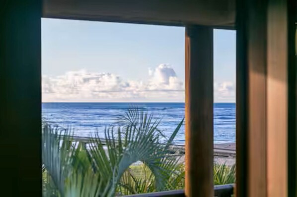 Ligger på en 1/2 acre beachfront mye, The Hanalei Beach House aksjer eiendommen med en annen stranden hjem. Tett vegetasjon sikrer personvern for begge husene. Hanalei Beach House ligger på baksiden av mye og har delvis hav og strandutsikt fra soverommet. Når surfingen er opp, kan du høre lyden av bølgene som bryter på stranden.