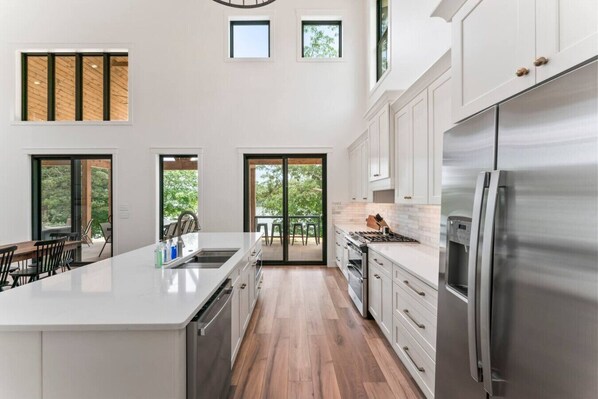 Sleeping Arrangements: First floor King en-suite master with walk in shower and separate soaking tub. Half bath on first floor. Second Floor king master en-suite with tub/shower combo. 3rd bedroom with queen bed, 4th bedroom with 2 Queen size beds. Open loft area with twin trundles that also can be put together as a King bed. Full bath in hallway to be shared.