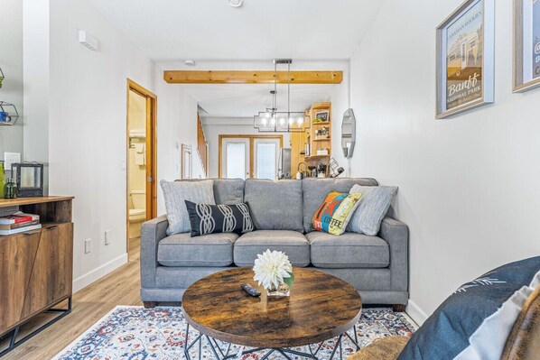 Embark on an unforgettable mountain escape in this elegantly designed 2-bedroom, 2-bathroom home, where modern comforts meet a stunning natural backdrop just minutes from Banff. Perfect for both adventure seekers and relaxation enthusiasts, this cozy and spacious retreat is equipped with everything you need for a truly memorable getaway.