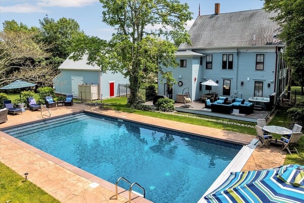 Prepare to be amazed as you pull into this stunning, fully renovated Gothic Revival manor with 1.2 acres of manicured grounds, tons of outdoor space, a converted game room barn, a 20X40 heated pool, hot tub spa and close to everywhere you want to be. Featuring 4 bedrooms (plus bonus sleeping spaces), 4 full bathrooms and sleeping up to 16 people, you and your guests will spend your vacation relaxing in luxury.