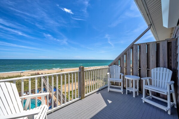 Oceanfront condo with outdoor pool, hot tub & pool table - near beach access