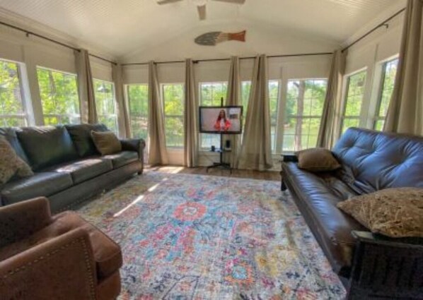 Newly renovated property, with good furniture/decor, felt fresh, clean. Property is secluded on a small lake and is beautiful. Master bedroom has an attached deck so you can privately enjoy nature in the evening. Propane grill works great and you can watch the lake while you grill amd not hassle with charcoal. Has a private dock and owner includes canoes/paddles/lifejackets and hammocks. There is decorative outside string lighting in both front and back of property for ambience. We use a lot of ice for drinks and water bottles and stand alone automatic ice maker was a godsend. There are bikes you can borrow for free to ride on the Longleaf Trace adjacent to the property. Property owner said hello in person, was immediately available to help when we didn't know how to get the washer started, and kindly responded to texts throughout. We had a competition at the convention center which was an easy 17 minute drive. Would 100% stay here again instead of in Hattiesburg or just to get away.