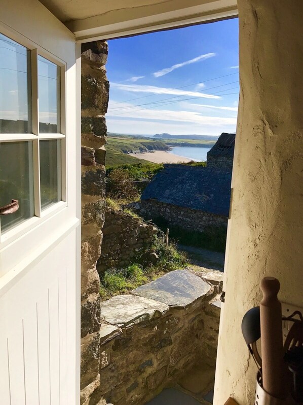Step into this tastefully renovated barn conversion where modern comforts blend seamlessly with rustic charm. The first-floor living area is designed to captivate with quaint side windows framing the sea views, while the newly built stone veranda beckons with a 3-person Hot Tub and an inviting al fresco dining space overlooking Whitesands Bay.