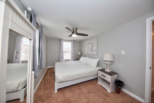 ☼ Three bedrooms: Primary: king bed; Guest bedroom 1: queen bed with Smart TV; Guest bedroom 2: 1 twin bed