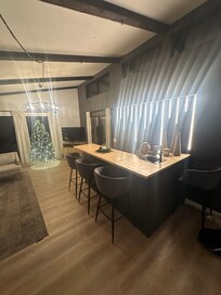 Without a doubt one of the nicest VRBO stays I’ve ever enjoyed! The property is lovely — a huge lot with abundant fruit trees situated on a quiet street a short (maybe 15 min.?) walk to downtown Healdsburg. The interior is decorated/furnished more like a boutique hotel than a vacation rental — spotless, with so many attractive/thoughtful touches (s’more makings, coffee table books, candles, plants, abundant throw pillows/blankets, and even a lighted Christmas tree and holiday decor). The bedrooms are spacious, well-lighted, and have ample storage for clothing. There are two separate living spaces with TVs (not counting the outdoor tv on the patio), so the adults could watch football in one area while the kids watched Bluey in the other. Kitchen is well stocked with everything we could possibly need (inc. nice wine glasses and acrylic drinkware for outside). The bar in the den area is so cool, as are all the fun outdoor offerings — besides the pool and hot tub, there are bikes (with helmets), huge Jenga and Connect 4, croquet, ladder ball, etc. As mentioned, there’s also an outdoor big screen tv, which you can see from the hot tub.Overall, the house is incredible, and the hosts were amazing too. The best communication I’ve ever had from a rental host, very reasonable policies/requests, and when we experienced a problem with the hot tub, they went above and beyond to make it right. Our pup was welcomed and loved the yard. Will absolutely return!