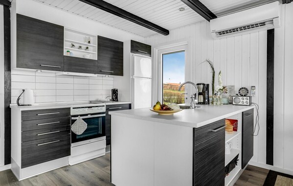 Se frem til et dekorativt og stilfullt innredet feriehus i Hejlsminde, som tilbyr deg et romslig, litt innebygd interiør. Her kan du gjøre deg komfortabel med en varmende peis eller et glass vin i stuen. Takket være de store vindusfrontene kommer det utrolig mye lys inn i rommet, noe som bidrar til den naturlige stilen. Utenfor vil barna finne mange muligheter til å sysselsette seg med et lekehus, huske, volleyballnett og mye mer. I godt vær kan du slappe av på solsengene og nyte smakfulle retter fra grillen på den åpne og delvis overbygde terrassen.