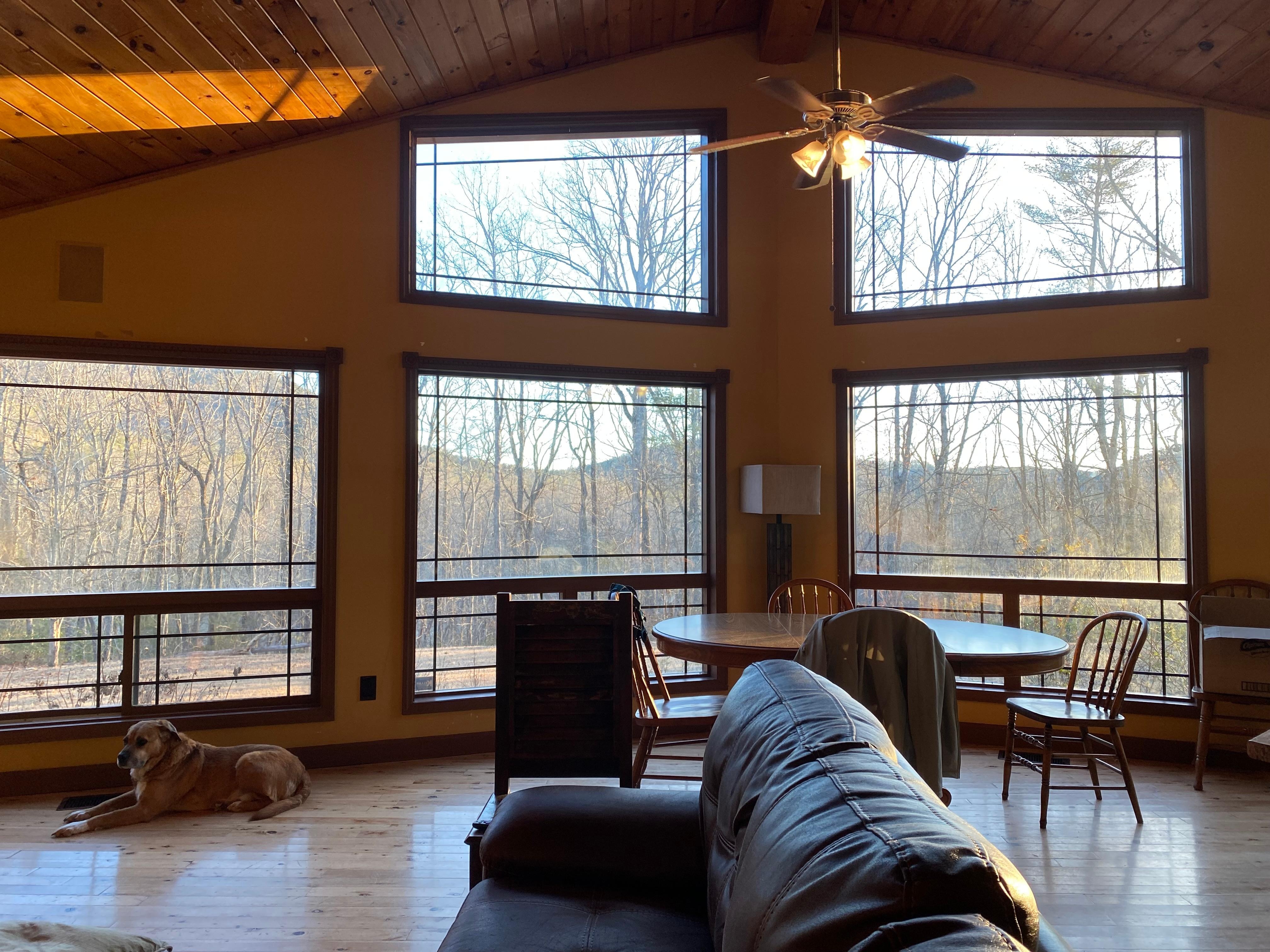 Vær på toppen av verden på Chimney Mountain Chalet. Reis ned en grusvei til den asfalterte oppkjørselen som tar deg til dette romslige hjemmet dekorert med et cowboy-tema. Verftet er et barnas paradis med mye plass til å leke. På baksiden er det inngjerdet tun for hunden / hundene. Øvre dekk er utstyrt med utemøbler, en sving og et hundhus. Gassgrillen er plassert under dekket delen av dekk med en takvifte og lys over! Foran huset er en veranda med bord, benker og stoler.