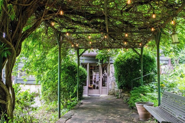Yes — the studio has its own entrance and outdoor seating.