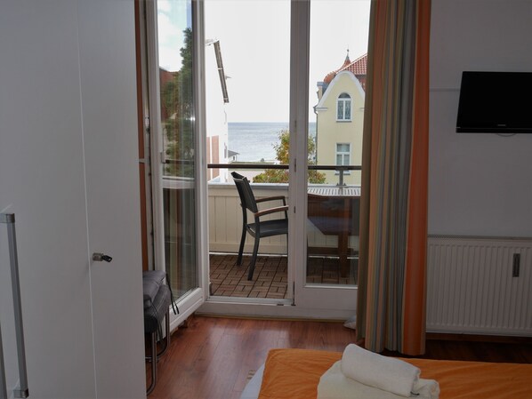 Den komfortable leiligheten i 1. Gulv av villaen (90 m²) med en liten balkong og glasert vinterhage til innsjøen, har et soverom for to personer (dobbeltseng) og et soverom for to personer (dobbeltseng) og i den kombinerte stuen og soverommet også for to personer (dobbel sovesofa ) utstyrt. I det kombinerte Wohn.- fårommet finner du blant annet en TV, radio (CD og DVD-spiller) Et bad: dusj, toalett, andre bad: dusj, toalett, badekar og vaskemaskin. Det moderne kjøkkenet er utstyrt med oppvaskmaskin, induksjonsplater, stekeovn med integrert mikrobølgeovn og kjøleskap med fryser. Et kjæledyr er tillatt, for en engangsavgift på 30, - € å betale. Leiekostnaden betales ved ankomst til tjenesteleverandøren på stedet. En parkeringsplass er tilgjengelig p�� eiendommen. De 5 stjernene refererer til en belegget på maks. 4 personer. For innkvartering på mindre enn 7 netter, må gjestene ta med sengetøy og h��ndklær eller bestille dem til en avgift på € 10, - per sett hos tjenesteleverandøren i Bansin. For opphold på 7 netter eller mer, opptil 4 x sengetøy og håndklær er inkludert.
