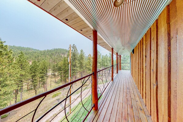 This property has an impressive view. It is a great place to sip coffee the morning and relax in the afternoon. While you are not completely isolated, you can fully immerse yourself in the beauty of the Black Hills. It is a wonderful house! Be prepared for three stories of stairs.