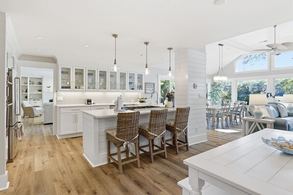 Light, airy, great for entertaining. Breakfast seating for 4.
