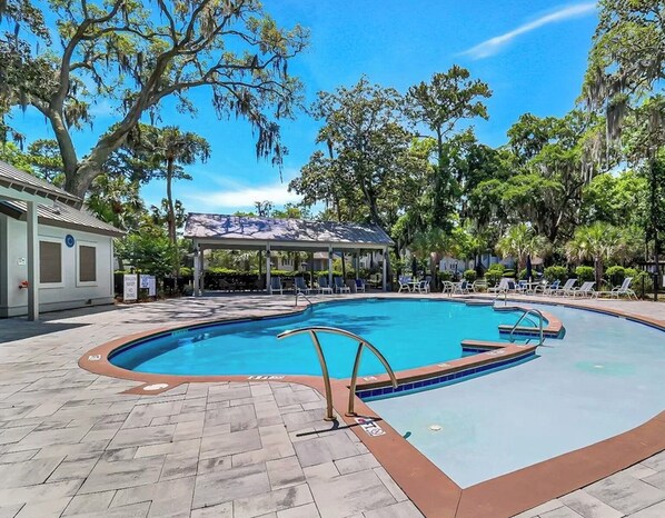 Brigantine Quarters, located within Shipyard Plantation is one of the most picturesque plantations on Hilton Head Island. This second floor villa is the perfect retreat for guests seeking a relaxing getaway. With 2 bedrooms including a king bed, 2 twin beds, and a sofa bed in the living room, this property offers a comfortable stay for 6. Enjoy the convenience of amenities like in-unit washer/dryer, on site grills, playground area, and 2 pools. Make your holiday one for the books with a stay at our place.