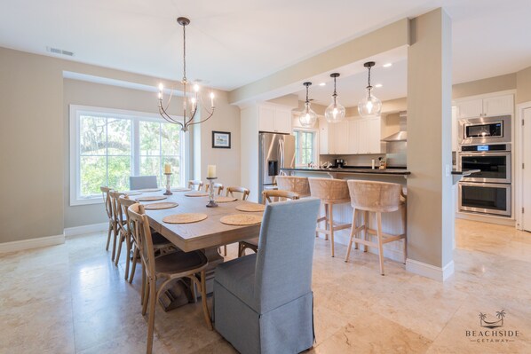 House is nicely arranged with three bedrooms on one floor and three on the other, making it easy to group members of different families together. Kitchen well stocked. Best thing is proximity to the beach even though on corner of N Forrest Beach. Very short walk to beach. Kids enjoyed the pool!