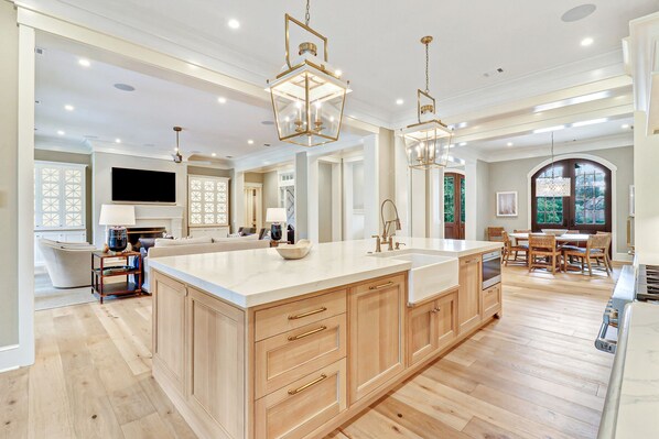 • A fully stocked, true cook’s kitchen (plus butler's pantry!) with multiple Sub-Zero refrigeration, a gourmet gas cooktop, 3 coffee makers (traditional drip, Keurig, and Nespresso Virtuo. Kcups and Nespresso pods coffee also supplied),