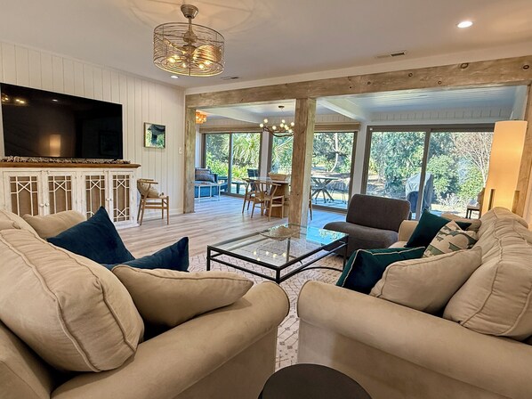 With its open, one-level floor plan, Casa del Mare is designed for comfort and relaxation. Lush views surround you from both the front and back—featuring picturesque scenes of the golf course, lagoon, and iconic live oak trees. Whether you're sipping coffee on the patio or unwinding after a day at the beach, the natural beauty is always close at hand.