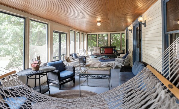 This home sleeps 18 and has plenty of room for everyone with a full kitchen, living room, a gas grill with outdoor seating for an evening meal, and a great wrap-around porch! The home features 6 bedrooms, all located in the upstairs of the home. Bedroom #1 has 3 bunk beds (6 twins), bedrooms #2 and #3 both have full-size beds, bedroom #4 has a queen-size bed, bedroom #5 has a bunk bed (2 twins) and a queen bed, and bedroom #6 has a queen bed. There is a full bathroom on the main floor and upstairs. Please note, the house does not have heat or air conditioning. There are electric heaters (x3), celling fans, and portable fans in each room. This is a pet-friendly home!