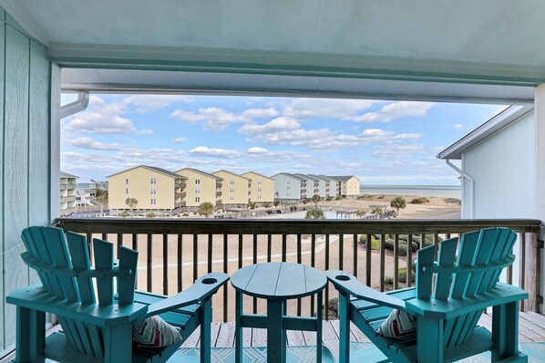 I feel cheated. Ocean front was advertised. This should say ocean view. I begged for a refund but instead we were the furthest from the beach. I have bad knees so walking 3 flights of stairs then the walk to the beach. I fell on the stairs and sprained my ankle. The place had a broken recliner dead bugs in the drawes and bottom cabnets the furniture is stained with who knows what. I think we des we deserve some of our money back. The rugs in the bathroom where full of sand. The ceiling fans were coverd in dust. The place was disgusting.