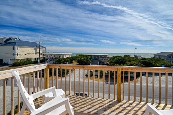 ⊚ View & Beach access: Step out onto any of our decks and enjoy views of the ocean. While not directly on the oceanfront, this beach house boasts a fantastic view from its second-row location. You can also stroll out onto the beach from the public beach access across the street! Enjoy coffee on the hammock and take in the sunrise while watching dolphins play in the surf.