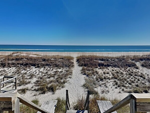 Finn tid til The Playhouse på Topsail! Dette nyrenoverte hjemmet med et innbydende og avslappende interiør ønsker deg velkommen med et moderne kjøkken, stue, spisestue som er åpen for hverandre og gir en flott plass for å henge med familie og venner! Med fem soverom og tre bad på to nivåer, gir dette hjemmet god plass for alle å ha sitt eget rom! Med tillegg av uterommet inkludert det åpne og dekkede omslaget rundt dekk og direkte tilgang til stranden, tar du spilletid til stranden og tilbake! når det er gøy i solen, hjelper den komfortable skylledusjen på dekket med å vaske bekymringene dine!