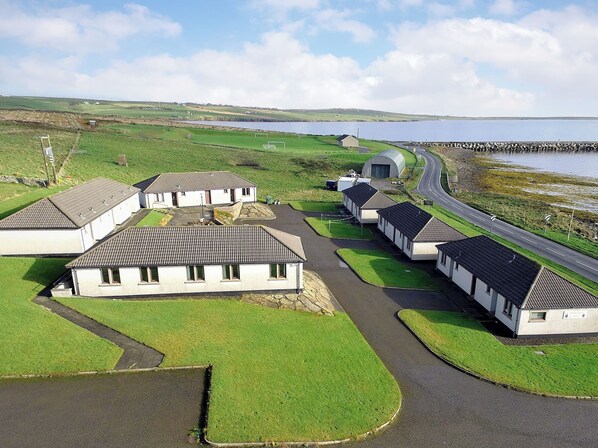 Dusjrom: Med dusjkabinett, toalett og oppvarmet håndklestativ .. Oppvarming av luftkilde, strøm, sengetøy, håndklær og Wi-Fi inkludert. Reiseseng og barnestol tilgjengelig på forespørsel. Velkomstpakke. Ekstern vaskerom med myntstyrt vaskemaskin og tørketrommel (deles med andre eiendommer på stedet) .. Sykkelbutikk. Privat parkering for 1 bil. Røyking forbudt.. Rockworks Chalets No. 2 er perfekt for en uke eller kort ferie, og har en ideell beliggenhet på hovedøya i Orknøyene i nærheten av alle store severdigheter og interessante steder. Det ligger rett ved kysten av historiske Scapa Flow og har utsikt mot det italienske kapellet, bygget av POWs andre verdenskrig. Denne tomannsboligen er smart anlagt og ferdig, og bruker det fantastiske naturlige lyset som kommer inn fra sjølandskapet. Ved innkjøring til eiendommen fører gangen rett frem til det fantastiske, åpne planområdet. Det er romslig og komfortabelt, og gir fantastisk utsikt over Scapa Flow. Stuen har en stor hjørnesofa og 40 "TV, spisestuen er romslig, og kjøkkenet er moderne og har alt du ønsker og trenger. Det er romslige dobbelt- og tomannsrom, og et stort bad med moderne dusjkabinett også utenfor gangen.