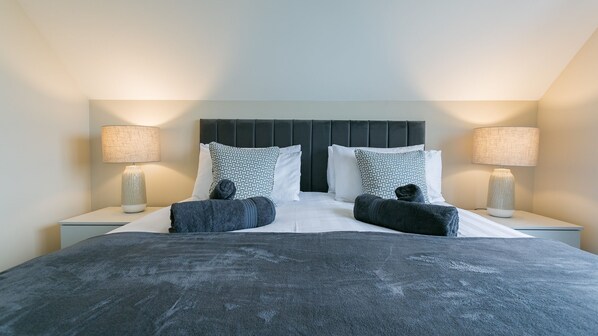 This magical space is all about celebration! An open plan living and dining space, faultlessly comfortable and flooded with light. The wall of glass patio doors leads out to the garden where you'll find furniture for lounging, a table for al fresco meals and a barbecue together. Unwind after a day's exploring in the elegant living space where blinds can be remotely closed for cosy long evenings with the large TV if the weather is foul.