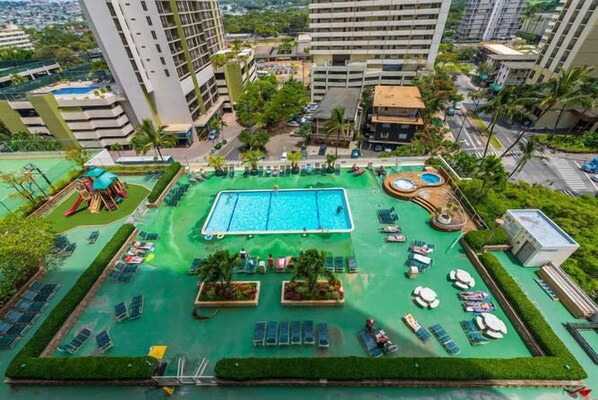 - Large heated pool